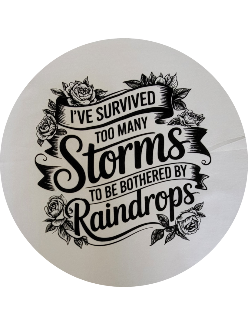 Wear your resilience proudly with this empowering shirt. White T with Black print for survivors who know their strength